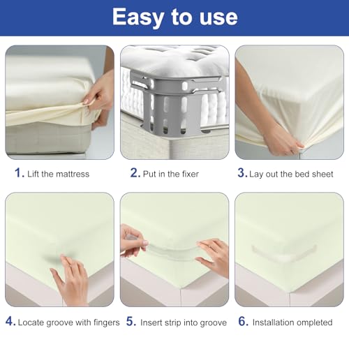 - سهل الاستخدام: ثبّت حوامل الملاءات بسرعة في زوايا المرتبة، ثم قم بضبط الملاءة وثبّتها باستخدام الأربطة المريحة. بدون أي عناء، فقط تغيير سهل وسريع للملاءات في كل مرة.