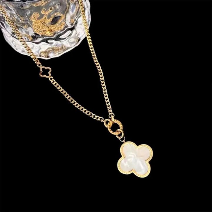 Generic - سلسلة بدلاية على شكل زهرة البرسيم للنساء، مطلية بالذهب عيار 18 قيراط، دلاية بأربع أوراق برسيم، سلسلة أنيقة بسيطة للحظ، هدايا مجوهرات للنساء