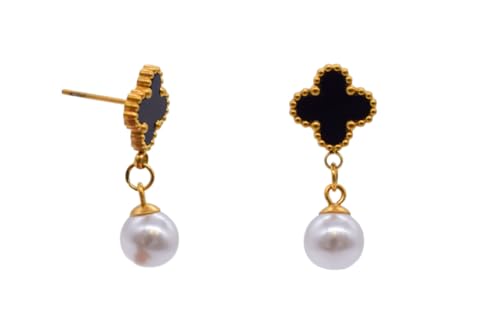 Generic - حلق ستانلس ستيل بتصميم زهرة البرسيم مزين باللؤلؤ للنساء - ذهبي