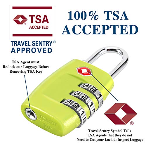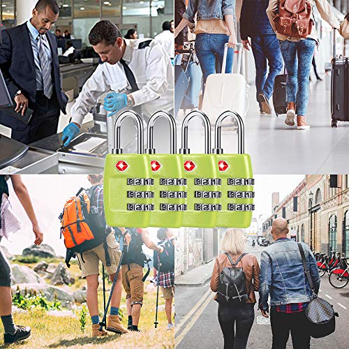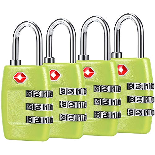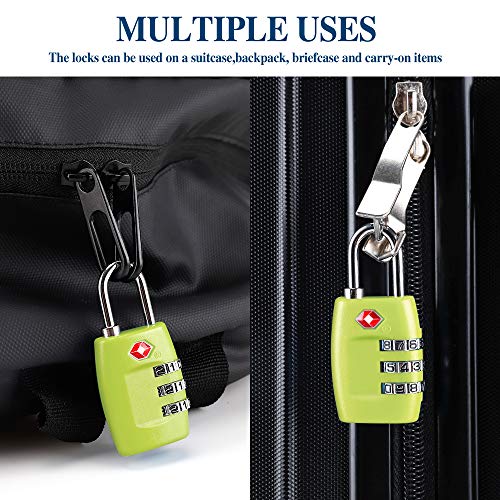 Cluckyu - أقفال شنط السفر TSA رقمية مركبة من 3 أرقام معتمدة لشنط السفر والأمتعة (من 4 قطع) لون أخضر 1