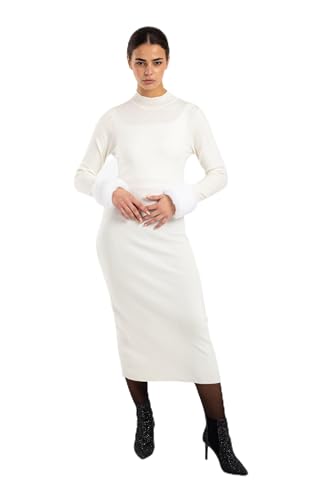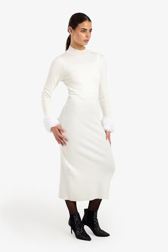 CLUE - كلو فستان متوسط الطول باساور عريضة من الفرو