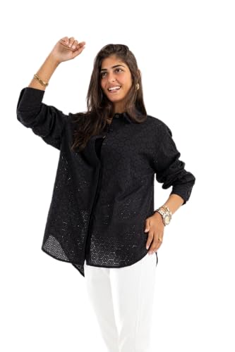 CLUE - قميص مخرم بحافة دائرية للنساء من كلو