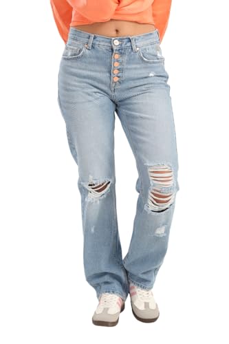 CLUE - كلو بنطلون جينز ممزق بقصة مستقيمة للنساء، موديل 17929-47-26-$P