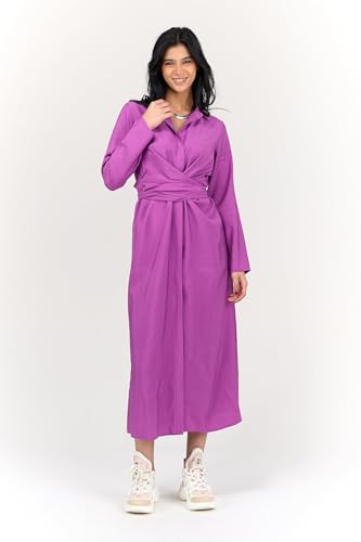 CLUE - كلو فستان بتصميم قميص مع حزام برباط للنساء