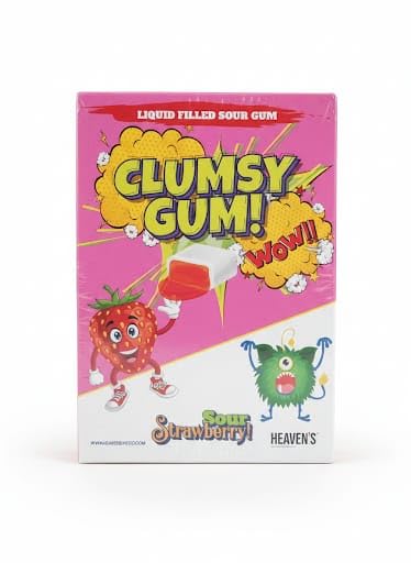 Generic - علكة كلامزي جام (Clumsy Gum) بنكهة الفراولة الحامضة - علكة محشوة بسائل منعش - تجربة حامضة ومثيرة - علبة 110 قطعة