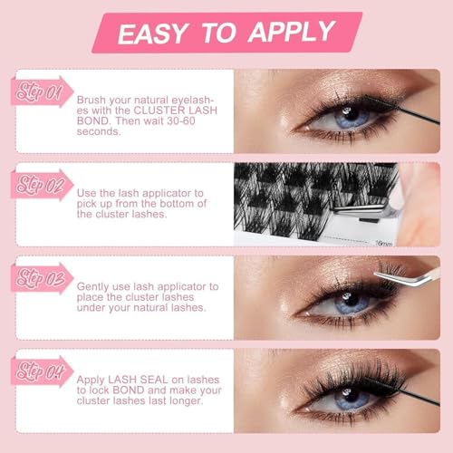 - التعليمات: التقطي مجموعات الرموش من شريط المجموعات. ضعي صمغ الرموش الفردي وانتظري لمدة 30 ثانية. ثم طبقي الرموش أسفل رموشك. من السهل جدًا إنهاء وصلات الرموش. [تذكير: قومي بتكديس مجموعات الرموش مع رموش شريطية أخرى للحصول على مظهر أكثر امتلاءً.