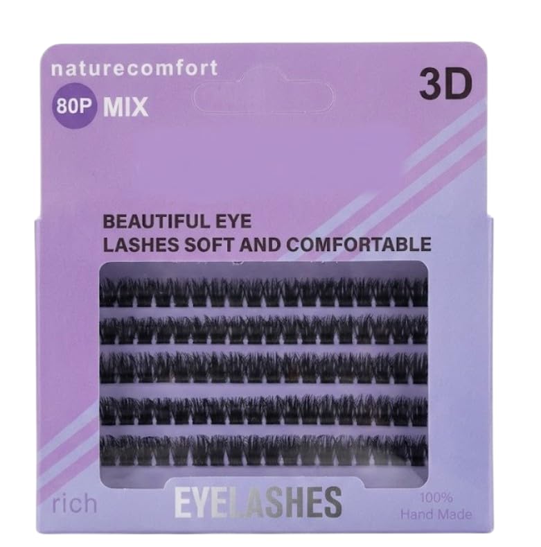Generic - رموش عنقودية من 80 قطعة فردية ملتفة على شكل حرف D، وصلات رموش صناعية ناعمة قابلة لاعادة الاستخدام يمكنك تركيبها بنفسك في المنزل (80 قطعة)