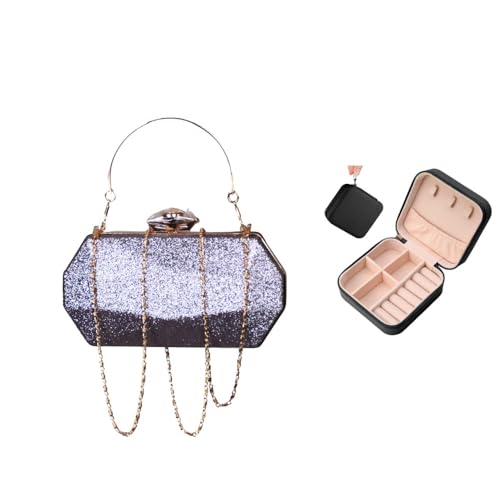 Generic - شنطة يد صغيرة بتصميم لامع وحزام سلسلة ذهبي، منظم مجوهرات محمول للسفر ومحفظة أنيقة للسهرات وصندوق تخزين للاكسسوارات والنساء