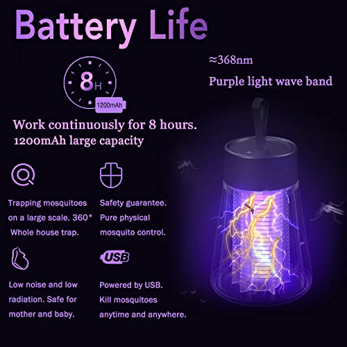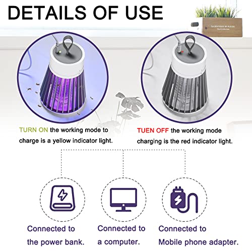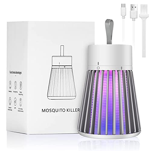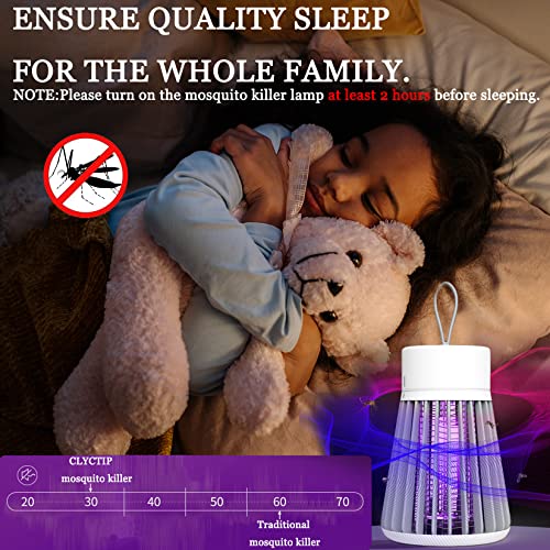 CLYCTIP - صاعق حشرات كهربائي بأشعة فوق بنفسجية لقتل الحشرات الطائرة للاستخدام الداخلي والخارجي، مصيدة ناموس بمصباح ليد فائقة السرعة وقاتلة للبعوض، بطارية تدوم 6 ساعات، محمولة بمنفذ USB من كليكتيب (رمادي وأبيض)