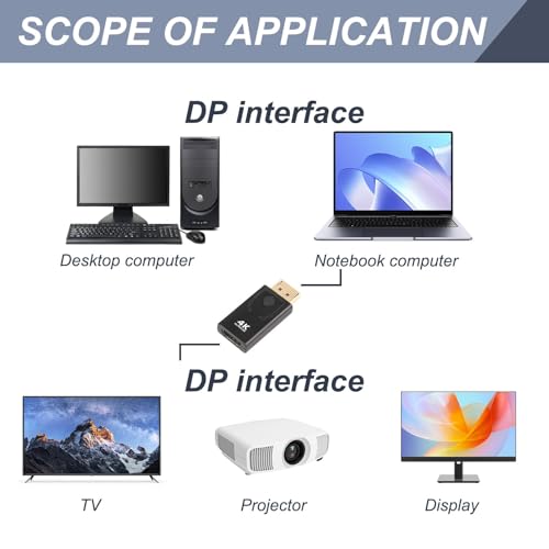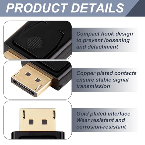 - 【توافق شامل】يتوافق محول منفذ العرض إلى HDMI مع أجهزة اللاب توب والتلفزيون وأجهزة الكمبيوتر وأجهزة العرض والشاشة وسماعات الواقع الافتراضي والأجهزة الأخرى المزودة بمنفذ عرض. (تنبيه: لا يدعم نقل الإشارة ثنائي الاتجاه، يحول فقط من منفذ عرض إلى منفذ HDMI).