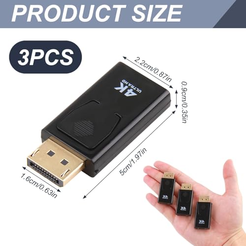 Clydewy - محول منفذ عرض إلى Hdmi، منفذ عرض إلى منفذ Hdmi، كابل 4k Dp إلى Hdmi، منفذ عرض ذكر 1080p ذكر إلى HDMI أنثى، محول صوت فيديو للاب توب والكمبيوتر المكتبي وجهاز العرض وشاشة Hdtv، مجموعة من 3 قطع
