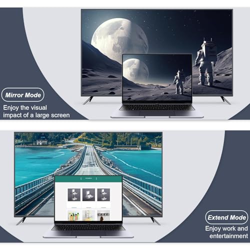 - 【وضع الانعكاس والتمديد】يدعم محول منفذ عرض إلى منفذ HDMI وضع الانعكاس والتمديد المزدوج. في وضع الانعكاس، يمكنك مشاهدة الأفلام أو ممارسة الألعاب على شاشة كبيرة، وفي وضع التمديد، يمكنك العمل واللعب في نفس الوقت مع عرض شاشتين لمحتوى مختلف؛ يلبي احتياجات السيناريوهات المختلفة.