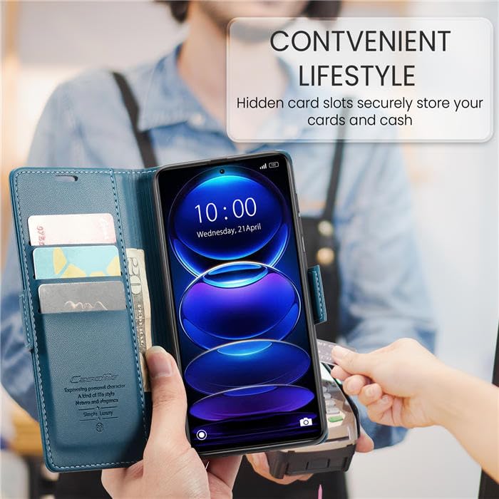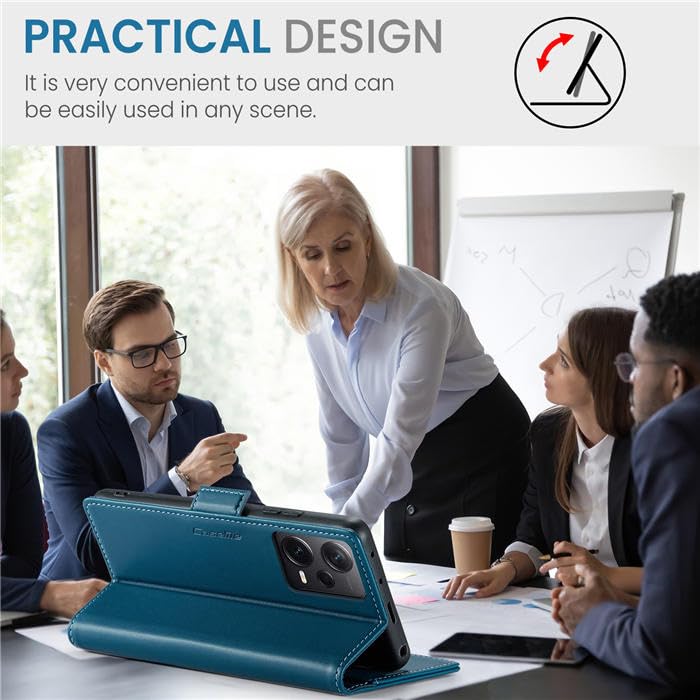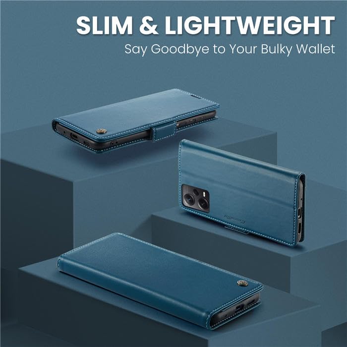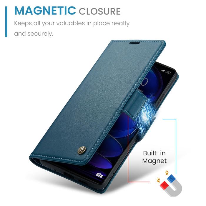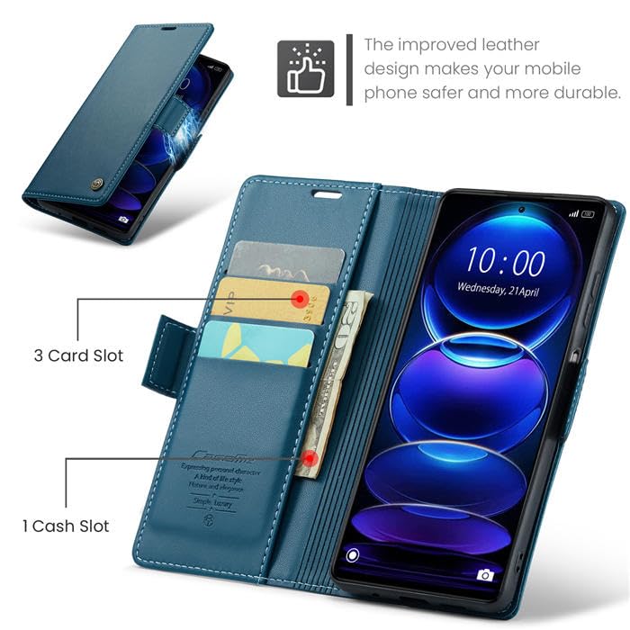 Generic - جراب موبايل CM 023 قابل للطي من الجلد الصناعي الممتاز لموبايل آيفون بقفل مغناطيسي وفتحات للبطاقات والنقود متوافق مع الشحن اللاسلكي، متوافق مع شاومي 13T/13T برو، أزرق