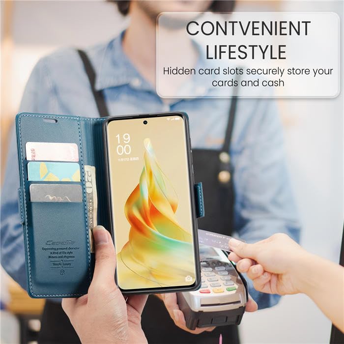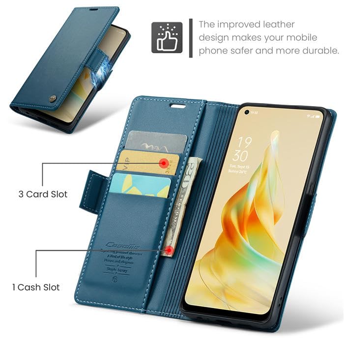Generic - جراب محفظة CM 023 بغطاء مغناطيس مع جيب سوستة ومسند من الجلد الصناعي مع حامل كروت وحزام تعليق، متوافق مع موبايل أوبو 8T - أزرق
