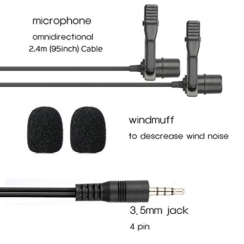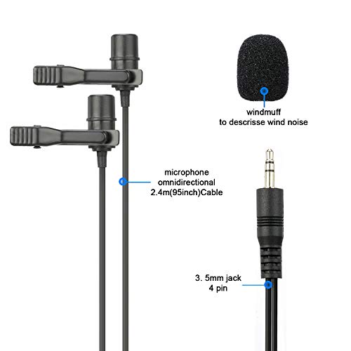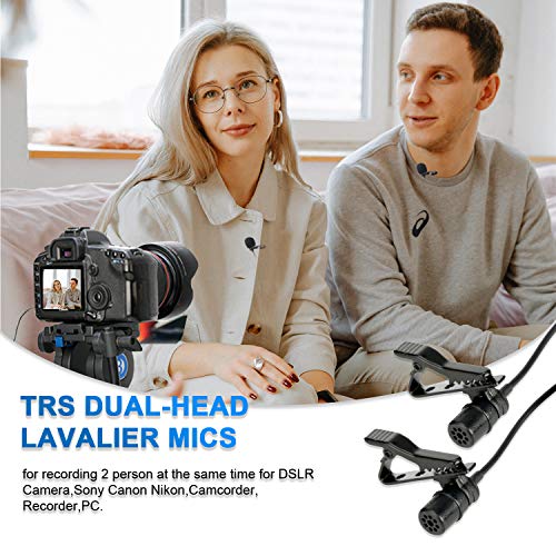 - ميكروفون لافالير مزدوج الرأس ومتعدد الاتجاهات يتميز بتصممي مزود بمشبك، مما يجعله مثاليًا لإجراء المقابلات بكاميرا دي اس ال ار وسوني كانون ونيكون وكاميرا الفيديو والمسجل والكمبيوتر الشخصي.