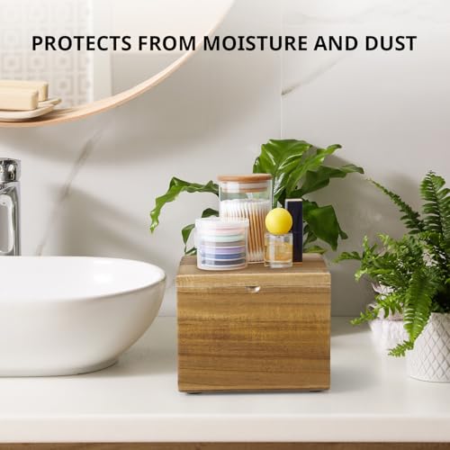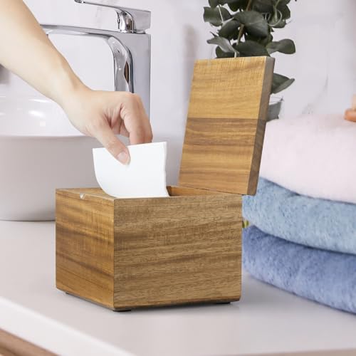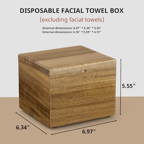 CMLKLZD - حامل مناشف الوجه للاستعمال مرة واحدة من سي ام ال كيه ال زد دي، صندوق من خشب الاكاسيا متوافق مع المناشف النظيفة XL (غير متضمنة)، حاوية خشبية لتنظيف مناديل الوجه الجافة، مناشف الوجه، تخزين منضدة الحمام