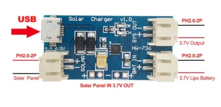 - مدخل اللوحة الشمسية: 4.4-6 فولت