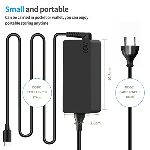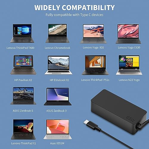 cnamszou - كيبل شاحن لاب توب بمنفذ USB C بقدرة 65 واط لاجهزة لينوفو ثينك باد وهواوي ميت بوك برو اير واتش بي وسبكتر واسوس وايسر وديل واكس اس وشاومي نوع سي أسود