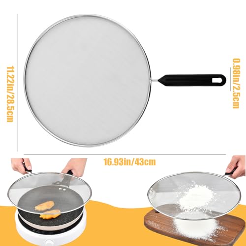 - توافق عالمي: بقطر كبير يبلغ 28.5 سم، تم تصميم واقي الرذاذ شديد التحمل للمقلاة ليناسب معظم الأواني والمقالي، لحمايتك أنت ومطبخك من الزيت الساخن، مما يقلل من رائحة المطبخ والفوضى.