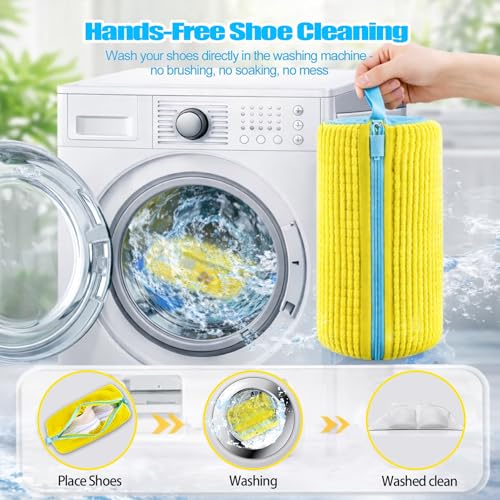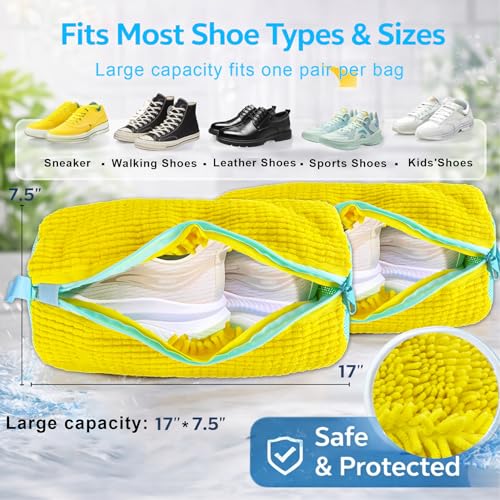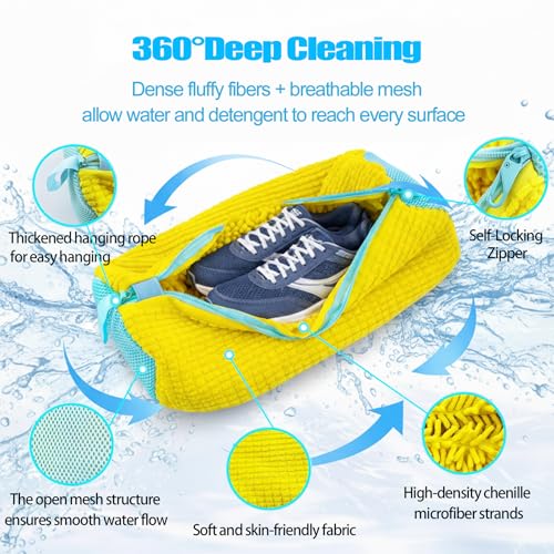 CNEYSID - شنطة غسالة الاحذية من سينيسيد - عبوتان من اكياس تنظيف الاحذية قابلة لاعادة الاستخدام، تنظيف عميق 360 درجة لاحذية التنس والاحذية الرياضية والشباشب، تتضمن 2 كيس غبار لتخزين الاحذية (اصفر)