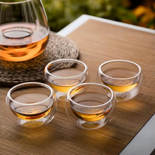 CNGLASS - سي ان جلاس طقم اكواب شاي زجاجية مزدوجة الجدار من 4 قطع، اكواب شاي اسيوية شفافة معزولة سعة 100 مل، كوب اسبريسو صغير للقهوة