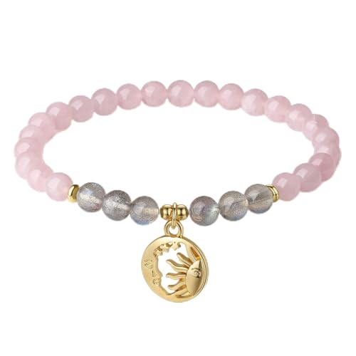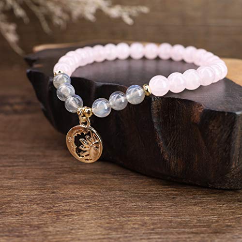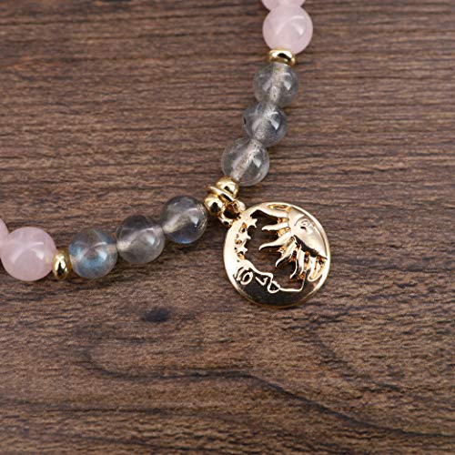 COAI - سي او ايه اي سوار للنساء من جيفت ايدياز مصنوع الكوارتز الوردي واللابرادوريت مع دلاية على شكل شمس وقمر ريكي