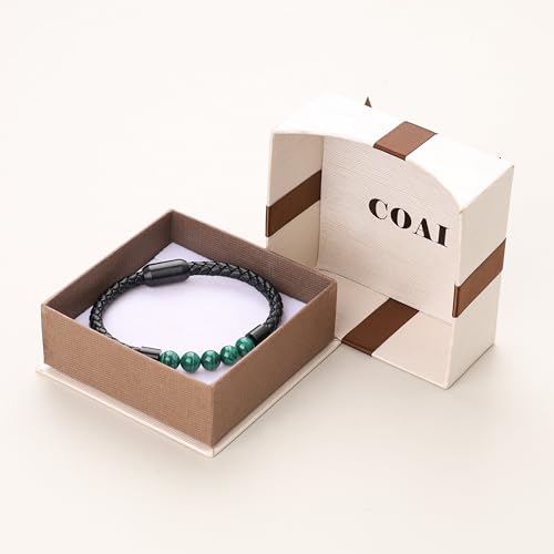 COAI - سوار جلدي مزين بخرز مصنوع من احجار حقيقية للرجال والنساء سي او ايه اي جلد جاسبر