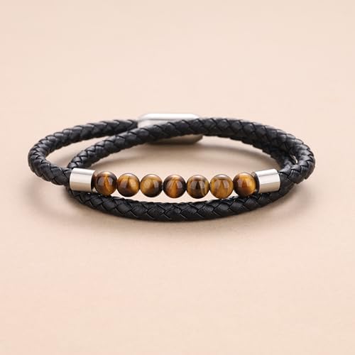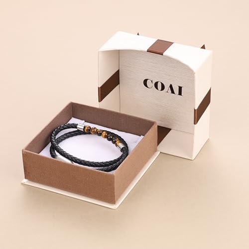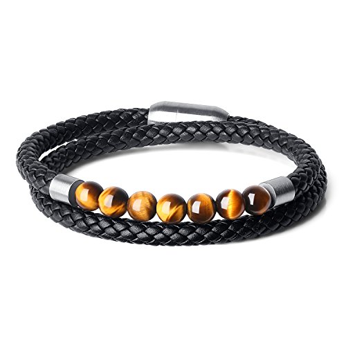 COAI - سوار جلد مزدوج الطبقات بخرز حجر للنساء والرجال من كواي, عين النمر
