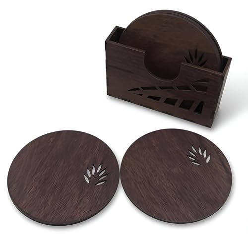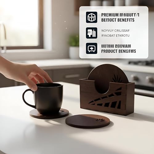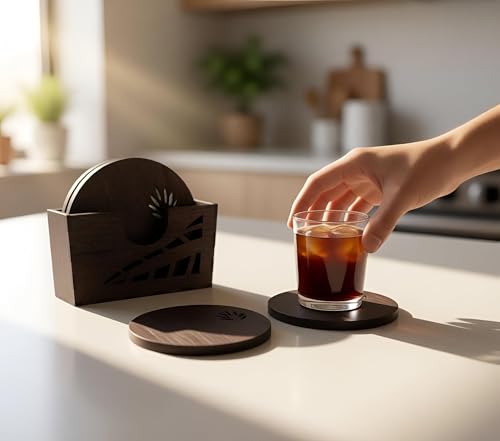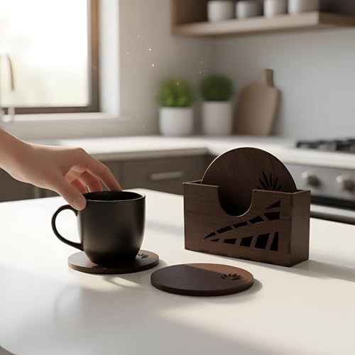 Generic - مجموعة قواعد اكواب وحامل - خشب صلب عالي الجودة، حواف ناعمة، قاعدة مضادة للانزلاق، تعزز تجربة المشروبات مع السحر الريفي الأنيق (مجموعة من قطعتين)