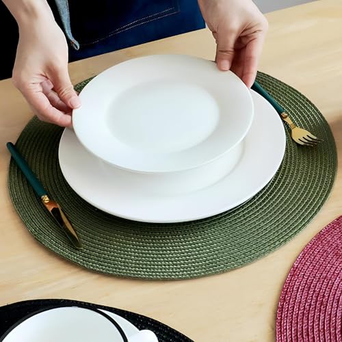 - ارتقِ بتجربة تناول الطعام الخاصة بك مع هذه المفارش المنسوجة بشكل جميل، حيث يبلغ قطر كل منها 38 سم. أكثر من مجرد لمسات زخرفية، تم تصميم مفارش الأطباق هذه لتعزيز الجوانب الجمالية والعملية لإعداد طاولتك، مما يوفر أساسًا أنيقًا وعمليًا لوجبات لا تنسى. استمتع بمزيج مثالي من الشكل والفائدة، مما يخلق جوًا جذابًا للعشاء والتجمعات العائلية مع الأصدقاء على حد سواء.