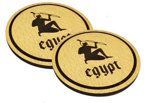 Generic - كوستر قاعدة اكواب خشب قطر 9 سم محفورة بالليزر شكل فرعوني -2قطعه - كود 2- 7308-من رنا ستور