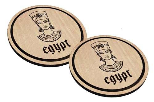 Generic - كوستر قاعدة اكواب خشب قطر 9 سم محفورة بالليزر شكل فرعوني -2 قطعه- كود 2- 7326-من رنا ستور