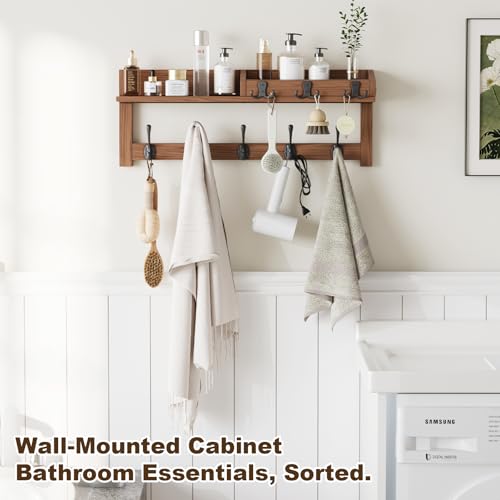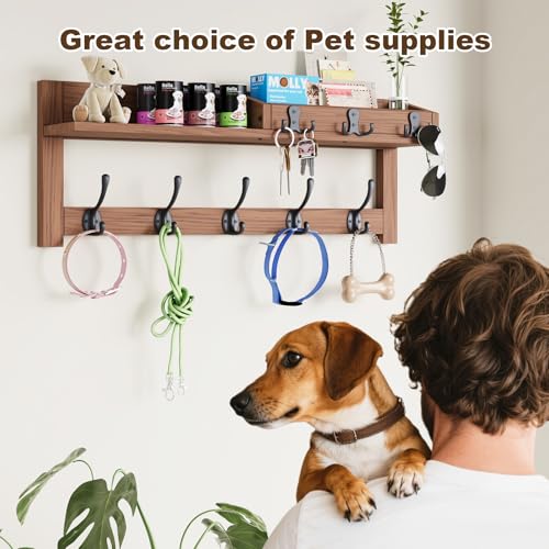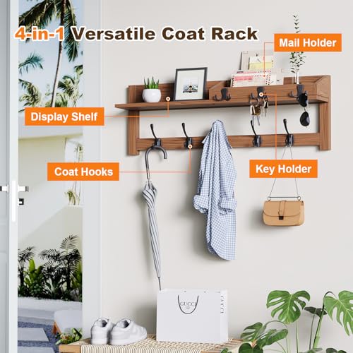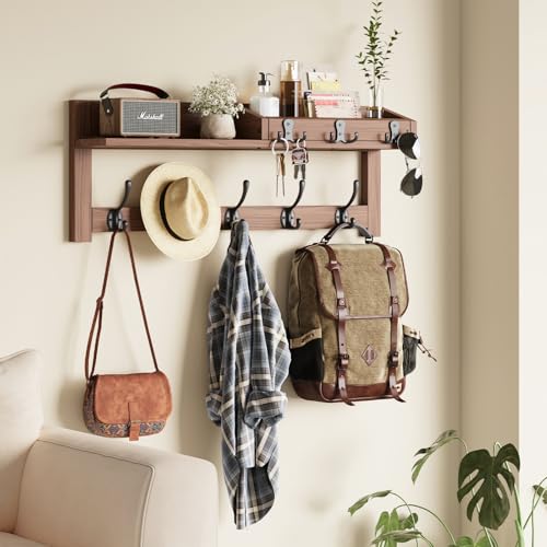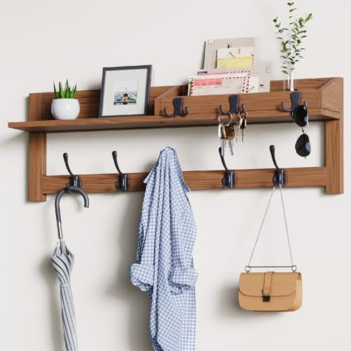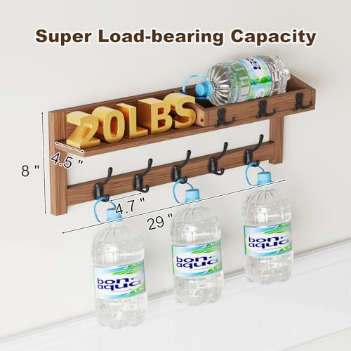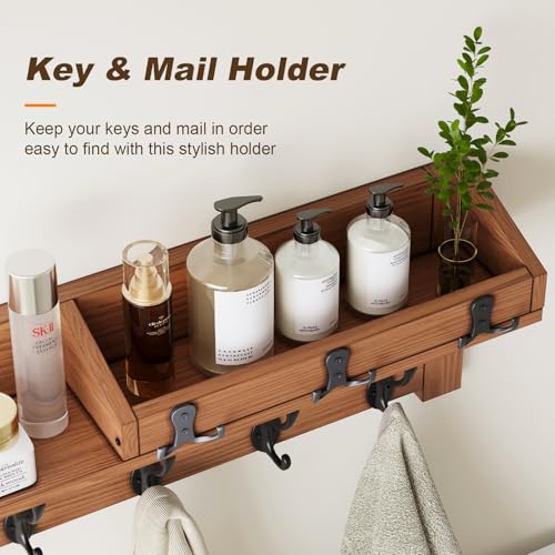 Aofure - حامل معاطف يثبت على الحائط برف رف خشبي معلق للمدخل بخطافات لشنطة الظهر والمحفظة والمفاتيح الكبيرة وحامل البريد 60.96 سم منأوفوري 50.0 رطل 50.0