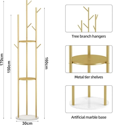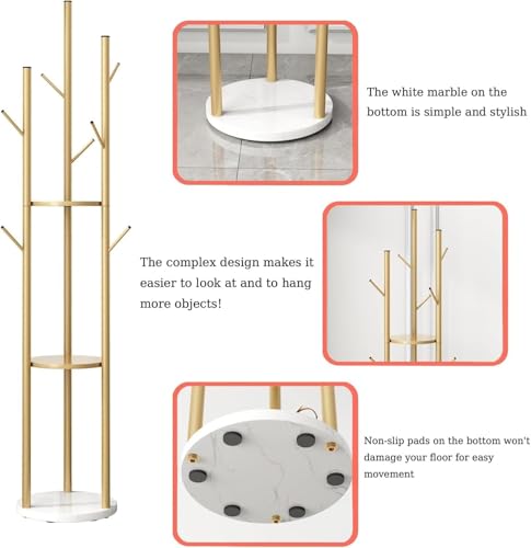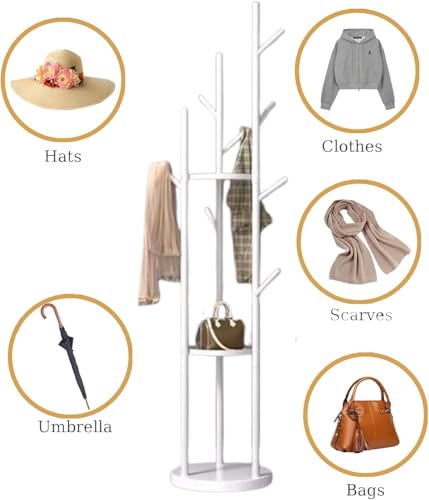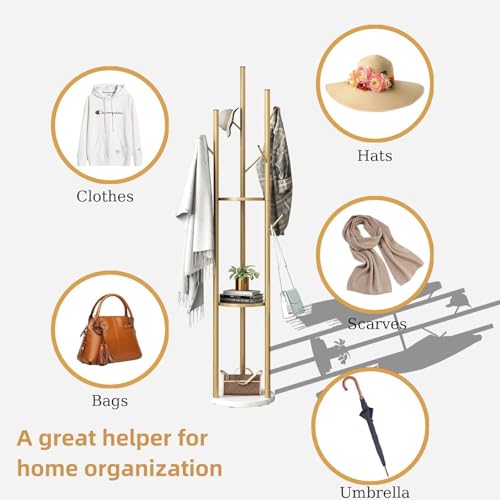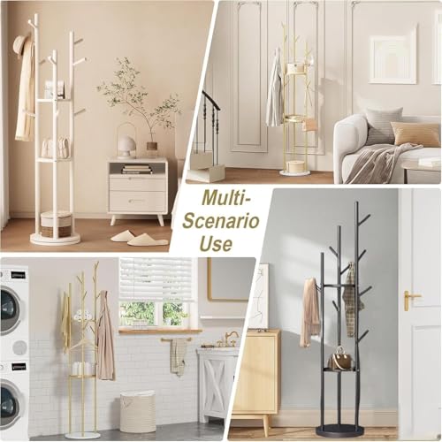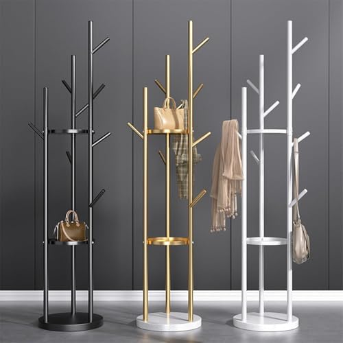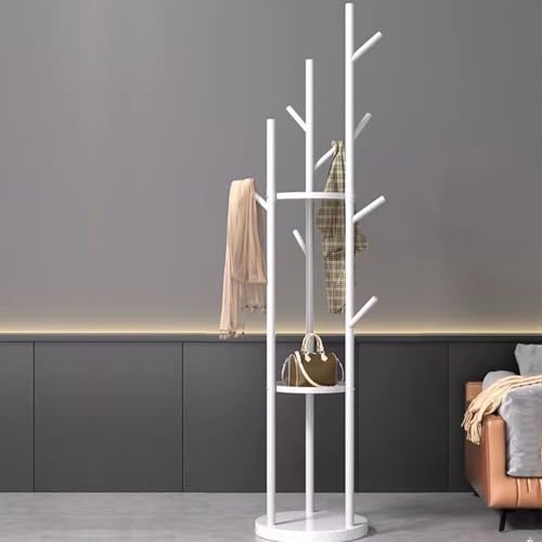 AOHRYME - رفوف معاطف قائمة بذاتها، شجرة معاطف عصرية مع 3 ارفف تخزين و9 خطافات، حامل معاطف معدني، شماعة شجرة مع قاعدة رخامية، للمدخل والرواق وغرفة النوم (ابيض)