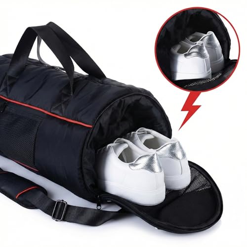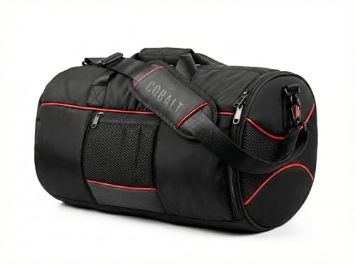 COBALT - كوبالت شنطة صالة الالعاب الرياضية من سبرينت - شنطة رياضية بسعة كبيرة مع جيب للاحذية، جيب شبكي جيد التهوية، تصميم متعدد الحمل للرجال والنساء (اسود × احمر)