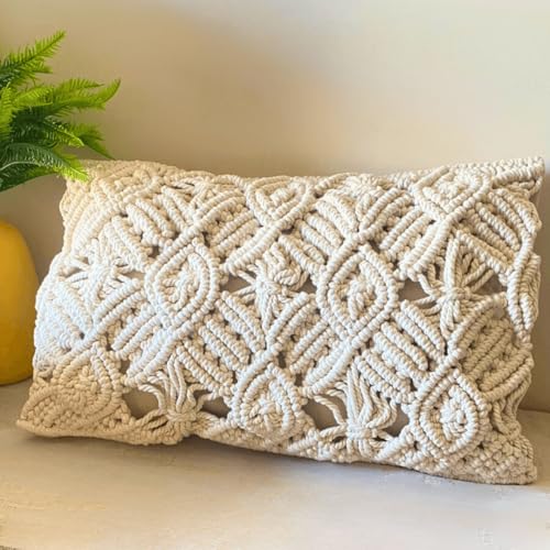 Coccaro Home - مخدة مكرمية كلاسيكية مستطيلة مع حشو من كوكارو هوم، مقاس 50 سم × 30 سم، لون اوف وايت