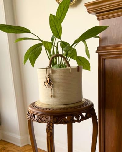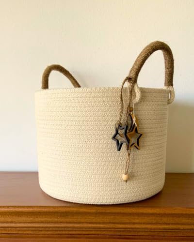 Coccaro Home - سلة قطن من الحبال مع اكسسوارات نجمة خشب من كوكارو هوم، مقاس 30 سم (عمق) × 25 سم (ارتفاع)