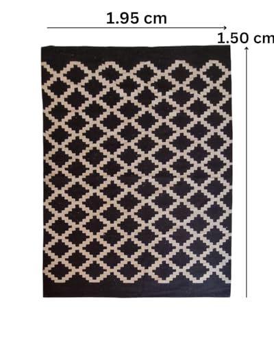 Coccaro Home - سجادة مصنوعة يدويًا بنمط الكليم الهندسي من كوكارو هوم، 1.95 متر × 1.50 متر، أسود/أبيض