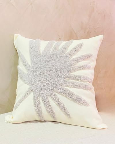 Coccaro Home - كيس مخدة مزخرف بنقشة أوراق نباتية مصنوع يدويًا مع حشو من كوكارو هوم، 45 × 45 سم، أبيض (اوف وايت)