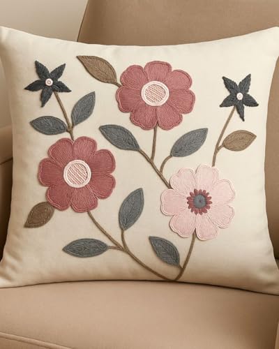 Coccaro Home - كوكارو هوم نيتشر - وسادة مطرزة بالزهور مع حشوة قطيفة للاريكة او السرير او ديكور غرفة المعيشة - وسادة عصرية مستوحاة من الطبيعة للمنزل والحديقة H-E-2B