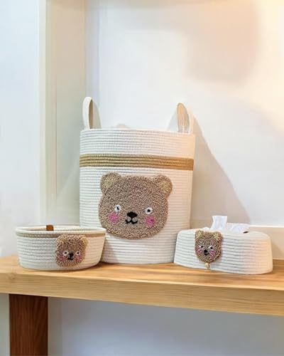 Coccaro Home - أدوات تخزين مناديل ورقية (K-FS-TB2) مصنوع يدويًا من الجوت، مزين بتطريزات على شكل دببة تيدي من كوكارو هوم، مكون من 3 أو 4 قطع
