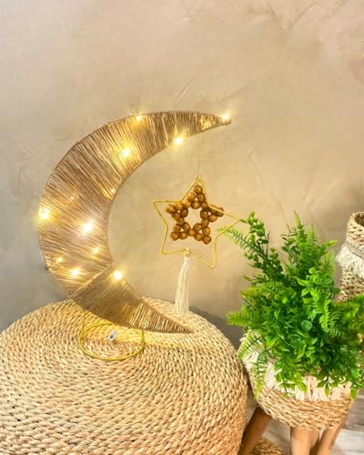 Coccaro Home - حامل بتصميم هلال رمضان خشبي للتزيين مع إضاءة من كوكارو هوم