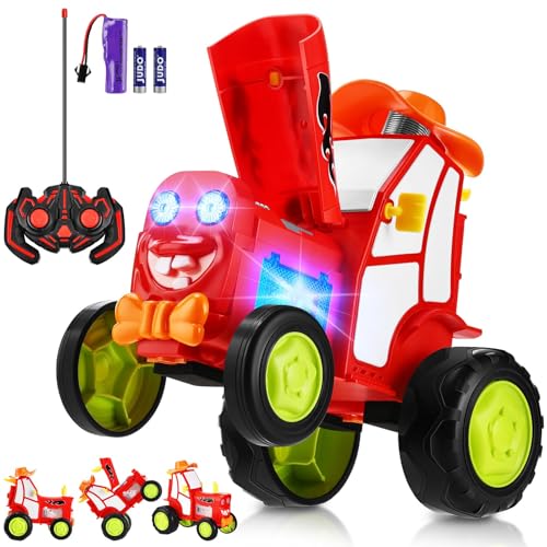 TNOIE - سيارة تحكم عن بعد للاطفال بعمر 3 و4 و5 و6 و7 سنوات، 90 درجة، مع ضوء وموسيقى، لعبة قطار كهربائية للاطفال والاولاد، لون احمر