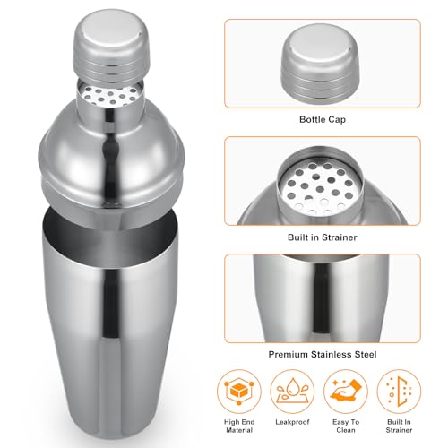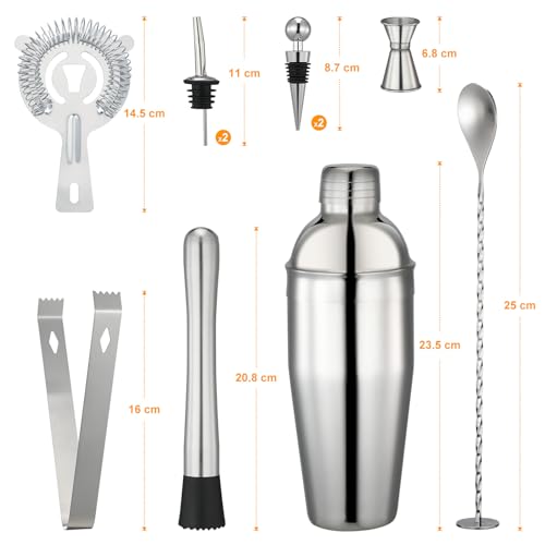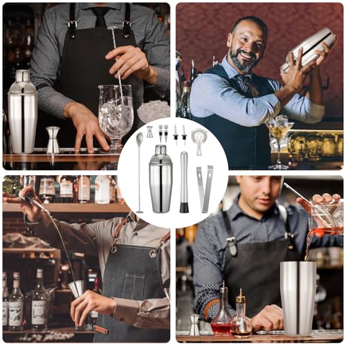 HDRNT - مجموعة شيكر كوكتيل 750 مل، 10 ملحقات شيكر كوكتيل من الستانلس ستيل، مجموعة نادل احترافية للمبتدئين والمحترفين، هدايا للعائلات والحانات والحفلات وهدايا للرجال