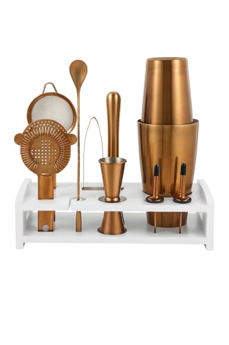 Generic - مجموعة شيكر كوكتيل مكونة من 10 قطع مع حامل خيزران مثالي للمنزل ومجموعة شيكر كوكتيل مارتيني للكريسماس واعياد الميلاد والزفاف والذكرى السنوية