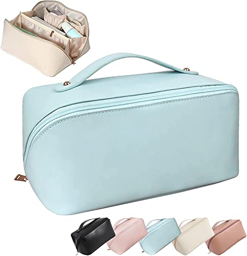 Coclux - شنطة من الجلد ذات سعة كبيرة متعددة الوظائف ومضادة للماء مع مقبض وفواصل للنساء لمستحضرات التجميل والعناية بالبشرة والمكياج وادوات الزينة والتنظيم والتخزين والسفر من كوكلوكس, أزرق