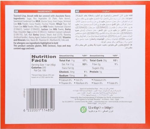 Cocoa lovers - بار بسكويت كاكاو بالكراميل والكاكاو كرسبي من كوكو لافرز، 12 قطعة