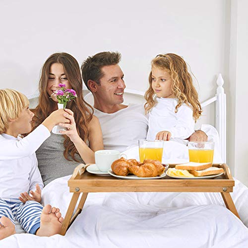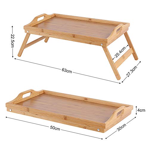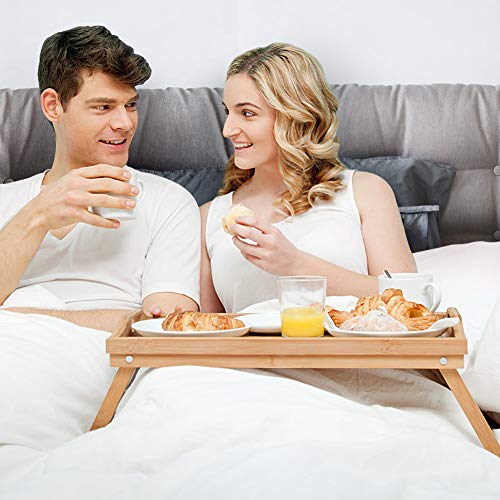 Cocoarm - صينية سرير من خيزران البامبو للإفطار بجانب السرير من كوكوارم، صينية تقديم الإفطار، طاولة جانبية للسرير وطاولة لاب توب مع أرجل قابلة للطي ومقابض 22.5×50×30 سم