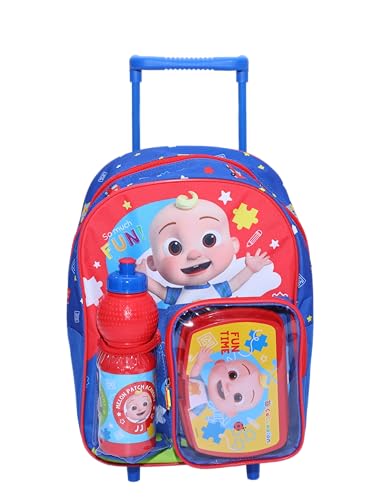 CoComelon - كوكو ميلون مجموعة مدرسية للاطفال - شنطة ظهر بعجلات دوارة من 3 قطع 14 مع صندوق غداء وزجاجة مياه - تصميم شخصية كرتونية