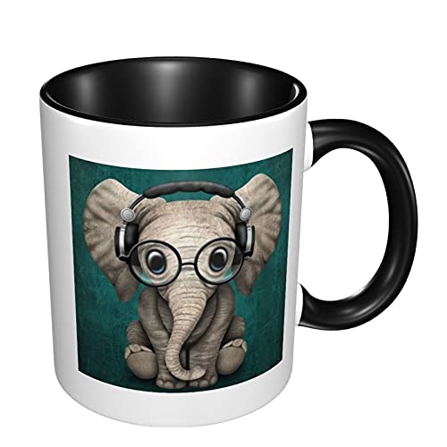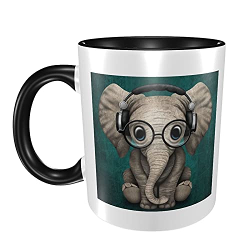 Coenog - مج قهوة وشاي بتصميم فيل صغير مزدوج اللون من السيراميك لعيد الميلاد وعيد الشكر من كونوج